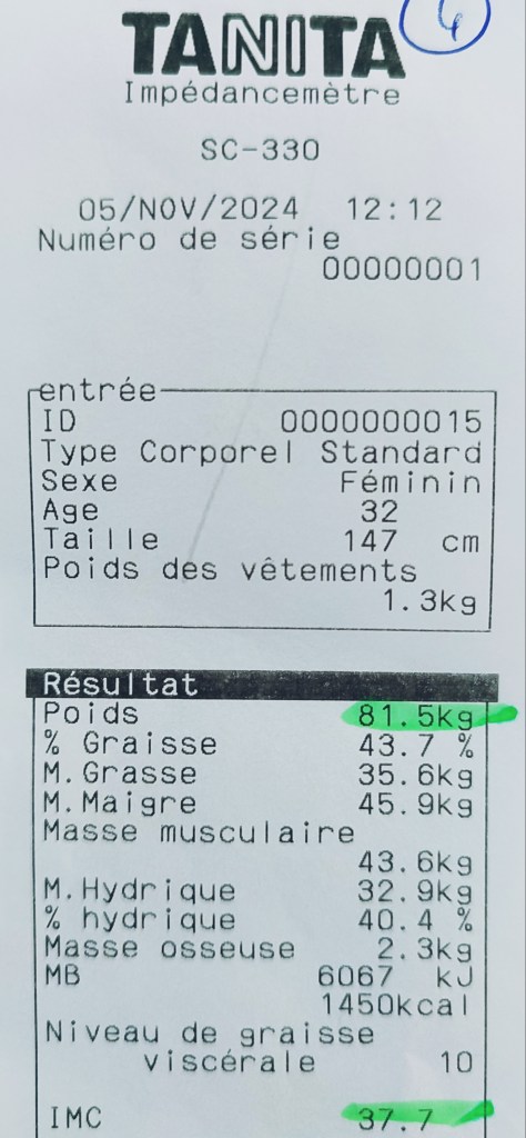 Et me revoilà, pour ma quatrième consultation ! Tu commences à être habituée ma biche, je vais te mettre mon résultat de la connasse Tanita.